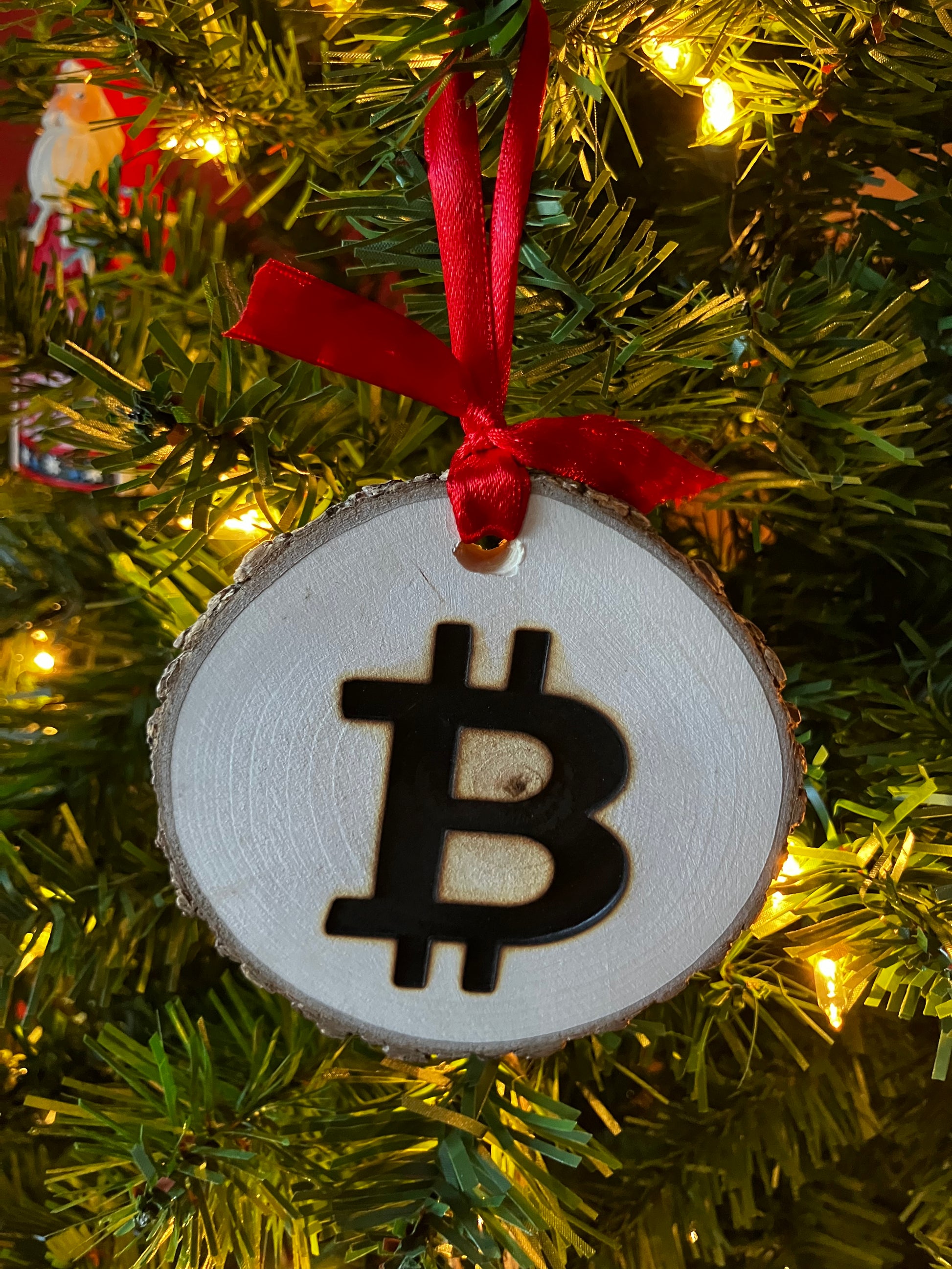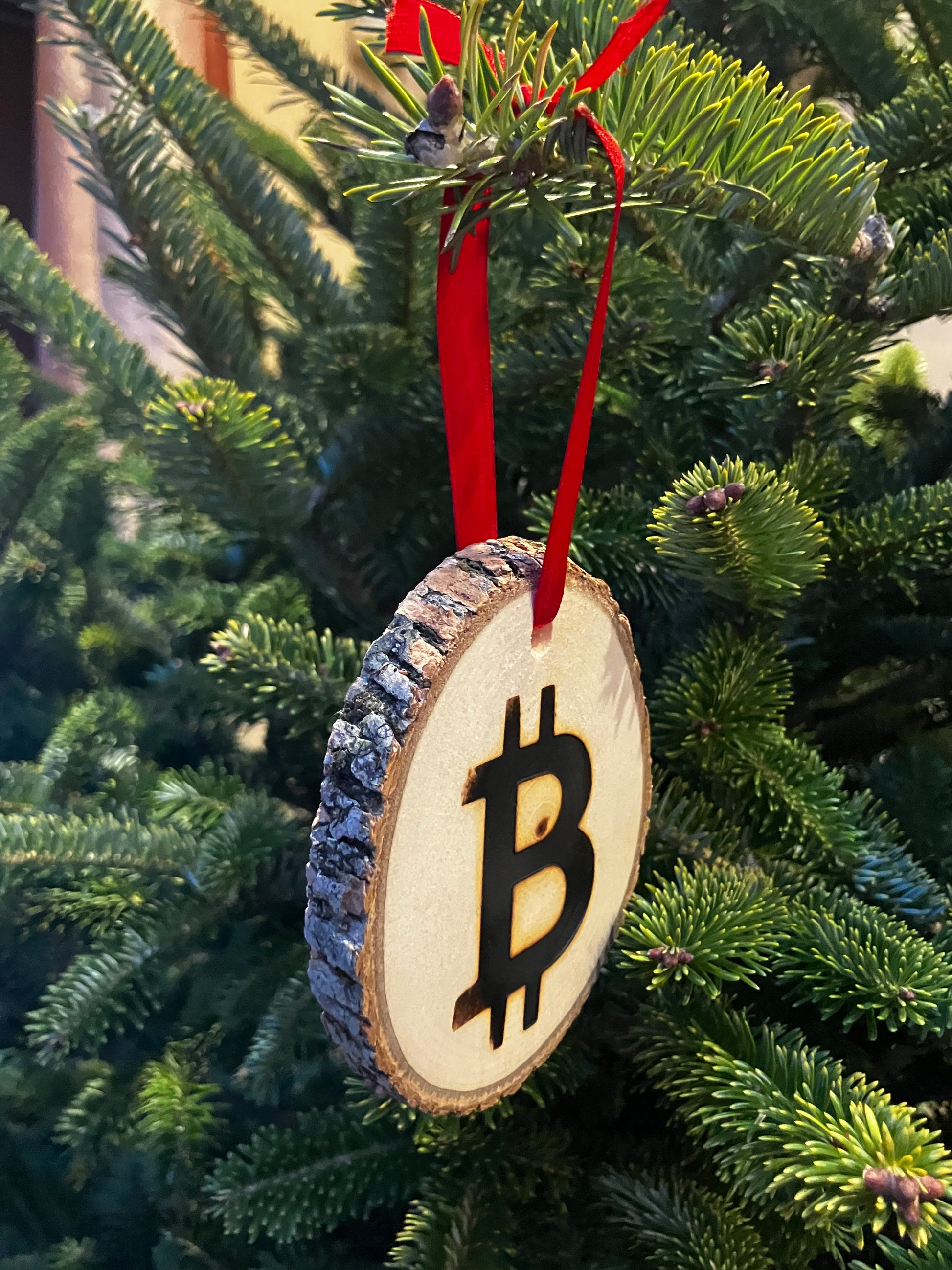 The “Live Edge Christmas Ornament” is the perfect bitcoin Christmas gift for the bitcoiner in your life.